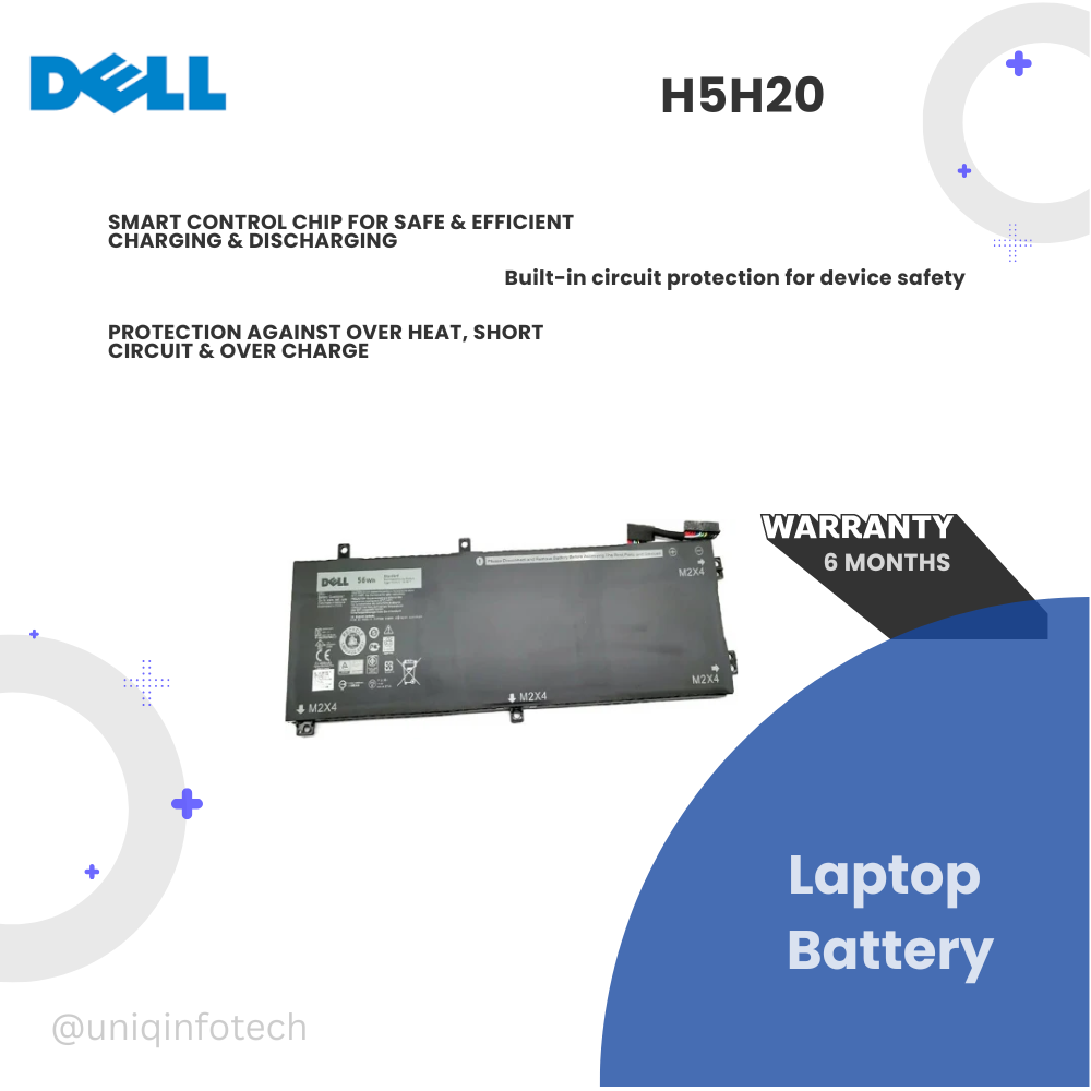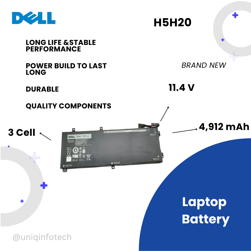 Inspiron 15 (7590), 7591, 7501 -XPS 15 (9560), 15 (9570), 15 (7590) -Precision 5520, 5530, 5540 -Vostro 15 (7590), 7500 Rechargeable Li-ion Battery Rating: 11.4V 3-Cell High Capacity: 56WHr Type H5H20, 0H5H20 DP/N: 5D91C; CP6DF