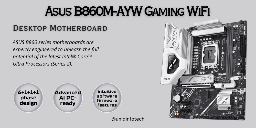 ASUS B860M AYW Gaming WiFi Supports 2 x M.2 Slots and 4 x SATA 6Gb/s Ports, DDR5, 1 x HDMI Port, 1 x PCIe 4.0 x16 Slot Supports Intel Core Ultra Processors (Series 2), LGA1851