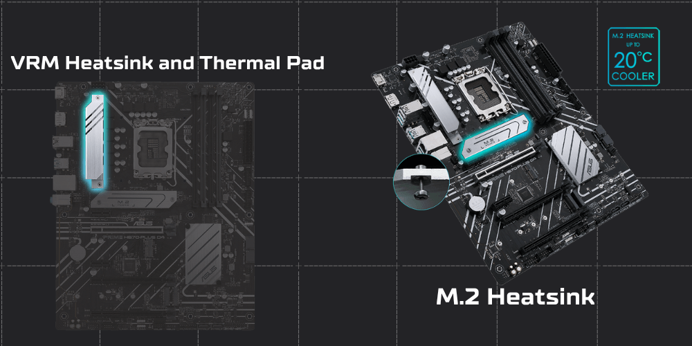 VRM heatsink, M.2 heatsink, PCH heatsink, hybrid fan headers and Fan Xpert 2+