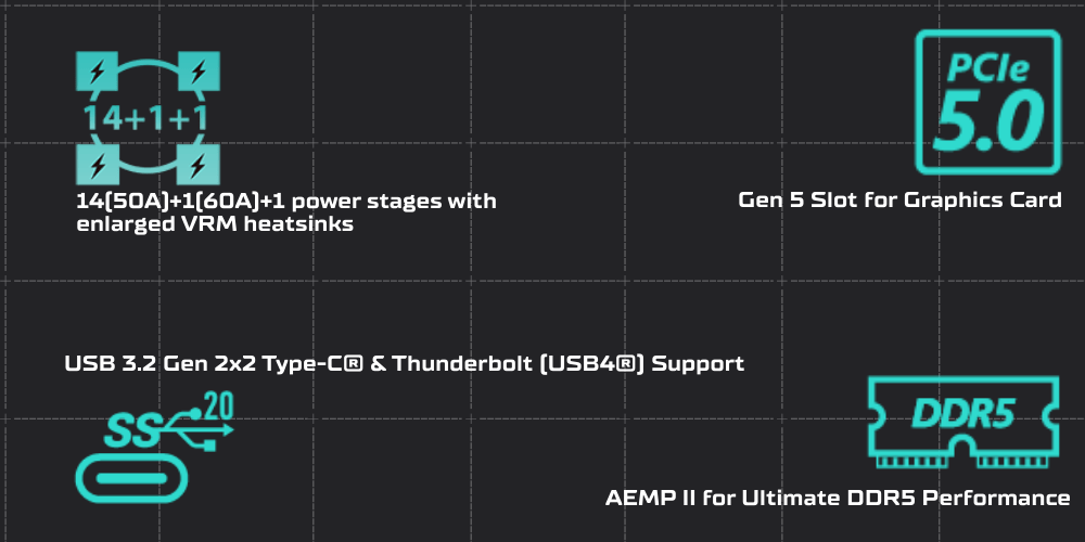 - Ultrafast Connectivity: PCIe 5.0, DDR5, WiFi 6, Realtek 2.5Gb Ethernet, USB 3.2 Gen 2×2 Type-C, front panel USB 3.2 Gen 2 Type-C, Thunderbolt 4 (USB4) header support